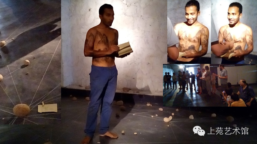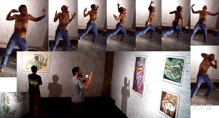 舒波·沙哈的作品展览现场除了展示他的画,也用行为艺术《表达中的障碍》与他的平面作品进行互动。
