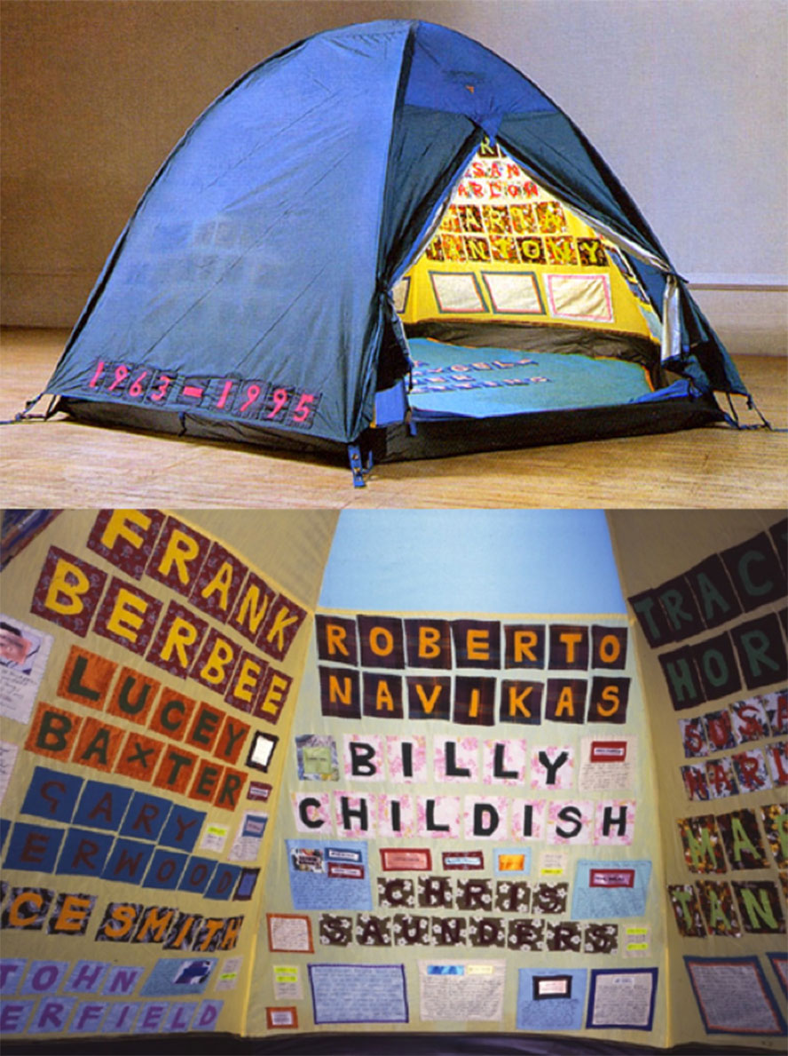 艾敏以帐篷为载体,在上面写下30多个从童年到成年,与她有过亲密关系之人的名字,其中包含亲人、伴侣等,将最私密的人生经历完全暴露。这件极具私人化的作品,在艺术界引发轩然大波,也让她开始被广泛关注。