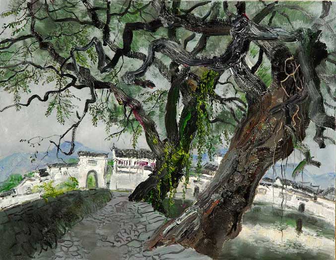 宋卫东的作品,吸收了中国文人画写意的传统,把写意的因素应用于油画当中,在绘画表现上融会贯通了油画与中国画的不同语言,使绘画上升到意象表达语言状态,不拘泥于形似注重表达感情。画面气象宏大、直抒胸襟,抒写了对自然景色的内心感受,强化对客观物象神韵的把握和表现。