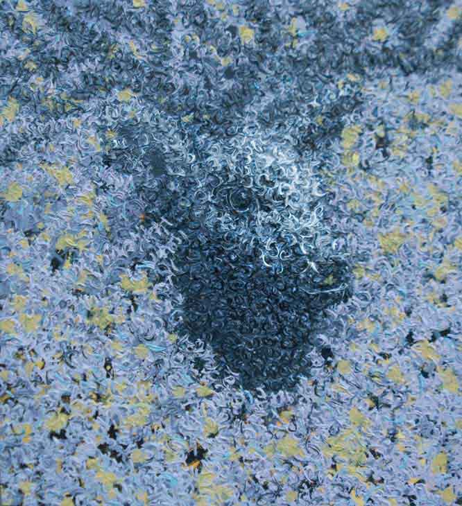 ,消失,聚集,分割,再相遇。任何的必然都变成了一次次偶然,其实我们的存在就是一个偶然。画面的支离破碎,片段式的构成,使人们感到似曾相识,但又非相似。这就和画面的肌理效果一样,偶然出现,却带给观者视觉上的短暂刺激,随即又消失转换成一种情绪,映像,最终到思考…..
