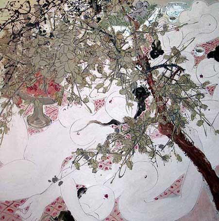 《人面桃花》之二.15O×150CM.赵梦歌2009年布面油画.