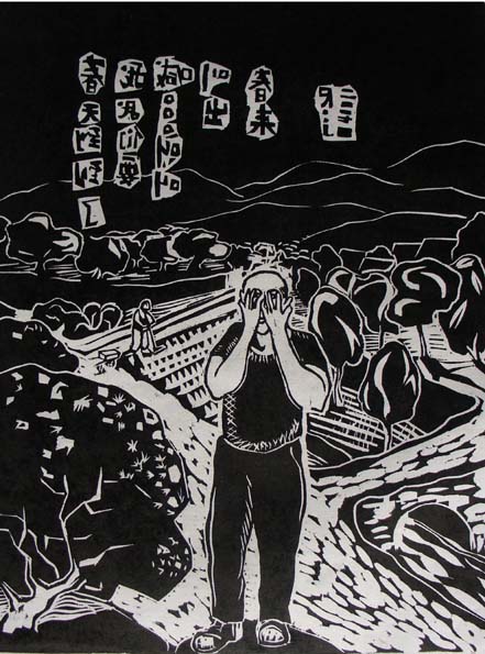 《叫出春来》黑白木刻(21.8cmx29.8cm)2009