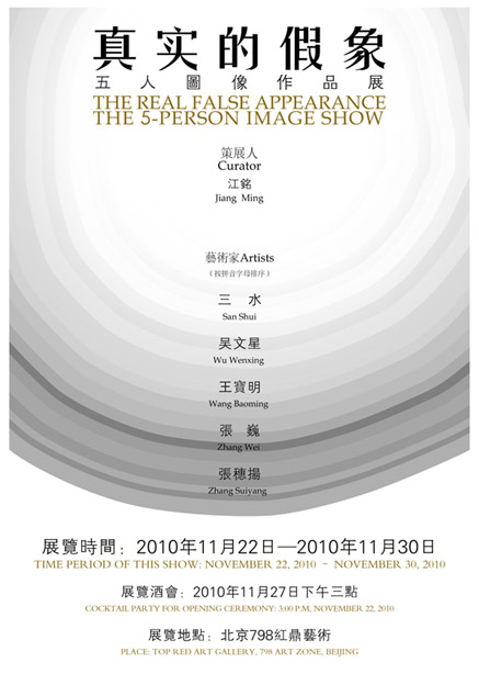 为一个已经确定了大多数作品和作者的展览写评论,的确有难度。仔细看了一下作品之后,我想到了“真实的假象”这么几个字。于是便确定了北京展览的标题。而标题的确定是为了阐述我的一些不成熟的想法。那么什么才是真实?从词面上讲,真实就是跟客观事实相符合的事物。而影像上所谓的真实我以为是指图像看上却就像客观存在的物象。那么什么才是假象?假象就是指那些与事物本质不符合的表面现象,这种表面的现象往往都是人为伪造的、虚伪的、不真实的。