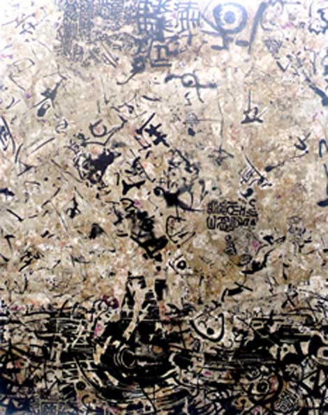 因此,最具中国式抽象艺术特征的必然是水墨抽象画,也被人称为书象艺术。书象艺术是从书法演变的抽象艺术,由书法中的文字作为符号元素,运用不同的技法与风格,创造出各类和书法有关但又不是现成书法的抽象艺术。