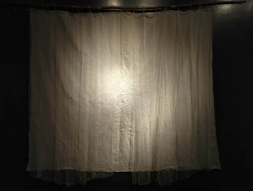 龙姝在上苑“闭关”,静修,细细地雕琢属于自己的时光。她善于运用生活中的纱性材料来帮助实现其表达的需要,在她是一种转化形式的过程存在,那一针一线是有着呼吸的。作品极具女性意识,一片极静的“纯”,自然明晰简洁自信,这合她的性情合她的品味也合她的信念!