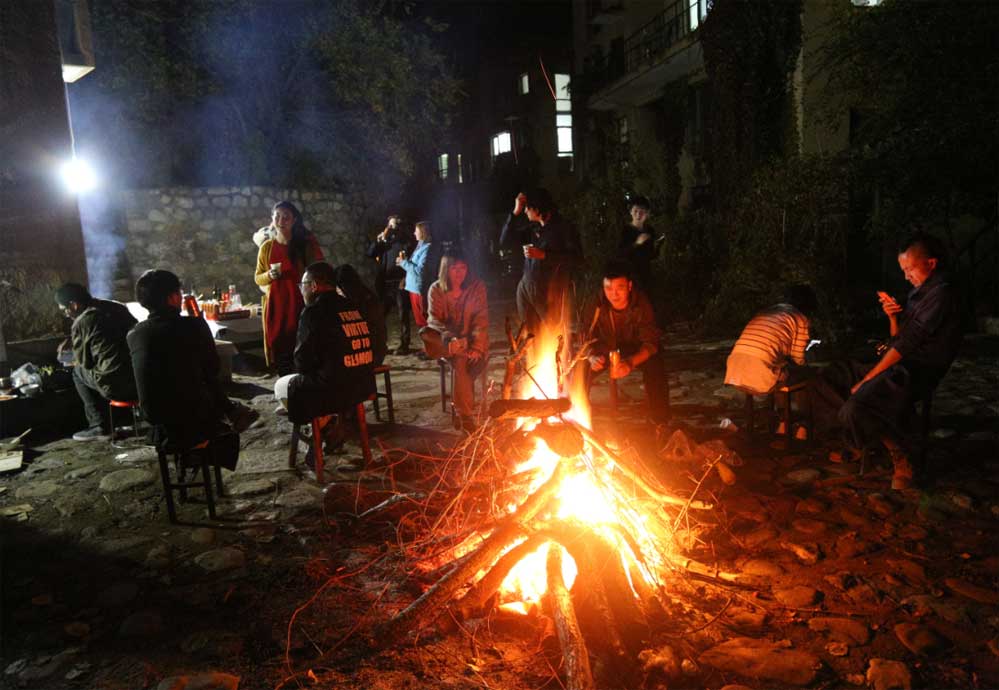 晚上,上苑艺术馆驻馆艺术家,举行了2017篝火晚会,这晚会上“凤舞”烟花