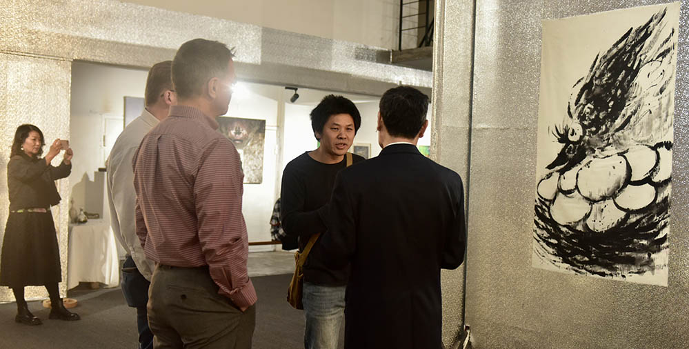 In the double exhibitions, Yao Li Shuang and Wei An filled the exhibition hall with paintings. They interpreted movement through nature and architectural spaces experienced in their cycling trips from Beihai to many regions of China. Qu Xiaoheng and Micco created thoughtful spaces in paintings which were hung alongside the labyrinth on the upper floor of the hall. For the solo exhibitions, Tang Jun continued work on ideas about spaces and different perspectives. Luo Yinglong, a performance artist at Shangyuan, contributed his solo show on suffering and compassion.